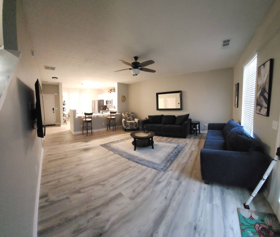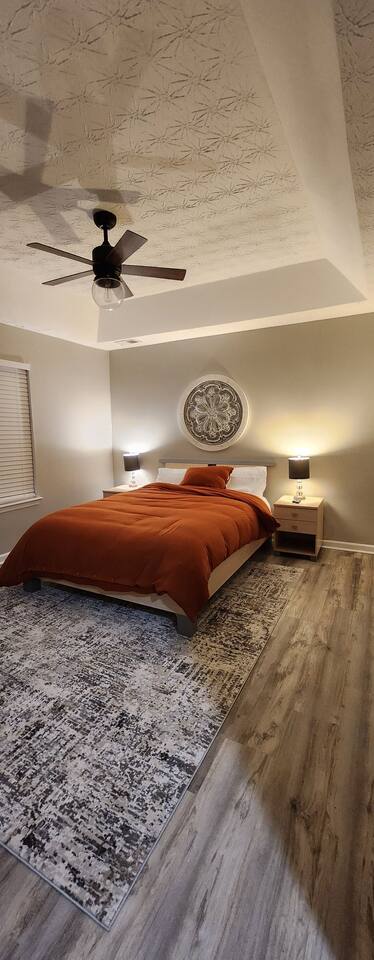 Owner Suite: A cozy retreat with a queen-size bed and a dedicated FireTV for your entertainment. Guest Bedroom: Enjoy a restful sleep in the full-size bed with a dedicated FireTV. Living/Family Room: The sofa bed in the living/family room provides versatile accommodation for guests. During the day, it serves as a comfortable seating area for relaxing and socializing. In the evening, it easily transforms into a cozy bed, offering additional sleeping space for guests. The sofa bed is equipped with high-quality bedding, ensuring a restful night's sleep. Its functionality and comfort make it a convenient option for guests seeking flexible sleeping arrangements. Bathrooms: Discover the epitome of comfort and style in our bathrooms at Lovejoy-Sensation. Immerse yourself in luxury with modern fixtures, including a pristine shower/bath combo. Pamper yourself with premium toiletries provided for your convenience. The well-lit vanity area ensures you look your best. Fluffy towels and a thoughtfully designed layout add to the overall experience. Our commitment to cleanliness and attention to detail ensures a refreshing and relaxing ambiance. Experience a true oasis within the comfort of your stay at Lovejoy-Sensation. Soap, body wash, and shampoo are provided in each shower. You will find first aid kits under the cabinet in each bathroom Living Room: Unwind in the stylish living room featuring a plush sofa bed, perfect for additional guests. Immerse yourself in your favorite shows on the impressive FireTV paired with a high-quality soundbar. Enjoy an away from home gaming experience. Stream hundreds of high-quality games anywhere with Xbox Cloud Gaming through our Game Pass Ultimate account. Kitchen: Experience culinary delight with our fully equipped kitchen boasting new appliances. Cook up a storm using the electric stove with an air fryer, rice cooker, food processor, dishwasher, and garbage disposal. Illuminate your culinary adventures with LED cabinet lighting. Coffee Bar: Indulge in a delightful coffee experience during your stay with our well-equipped coffee bar. The coffee bar is stocked with a variety of coffee blends, tea options, and all the essentials to enhance your morning ritual or provide a pick-me-up throughout the day. Laundry Access: Stay refreshed with the provided washer and dryer located on the main level near the kitchen. Laundry soap, bleach & dryer sheets are provided. Please empty the lint trap after each dryer cycle. Backyard: Enjoy privacy and relaxation in the cozy fenced backyard, an ideal spot for outdoor activities and grilling! Grill provided in the back. TV/entertainment: Each living area has a FireTV with a guest profile. Within the GUEST profile, you have access to all of the apps (youtube, youtube TV, netflix, HULU, etc) ALREADY downloaded on the TV. Please sign in using your account log in information if necessary. Smart Locks: Experience convenience and security with our state-of-the-art smart locks at the Lovejoy-Sensation property. Here's how they enhance your stay: Keyless Entry: Forget the hassle of traditional keys. Enjoy keyless entry with a secure code for the duration of your stay. Personalized Codes: each guest receives a unique access code, ensuring personalized security and peace of mind. Remote Access: Coordinate your check-in and check-out seamlessly. You can receive and manage your access code remotely, providing flexibility for your travel plans. Enhanced Security: Our smart locks are designed with advanced security features, prioritizing your safety throughout your stay. Xbox Cloud Gaming: For gaming enthusiasts, the Lovejoy-Sensation property offers an exciting addition to your stay – Xbox cloud gaming! Immerse yourself in a gaming experience like no other with the following features: Xbox cloud gaming access: connect to your Xbox account or ours and enjoy a vast library of games directly through the cloud. The living room is equipped with FireTV, a soundbar, and recliner, creating the perfect gaming environment. Whether you are a casual gamer or a dedicated enthusiast, our property provides the ideal space for a gaming retreat. Have a blast exploring virtual worlds and epic adventures during your stay at Lovejoy-Sensation!